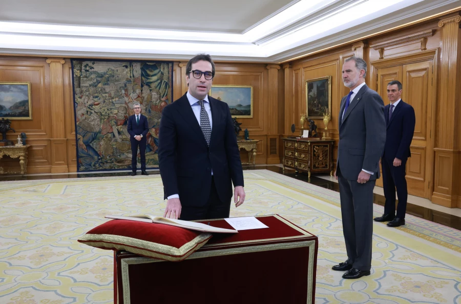 El vicepresidente primero del Gobierno y ministro de Economía, Comercio y Empresa, Carlos Cuerpo, y el nuevo titular de Hacienda, Arcadi España, han prometido sus cargos ante el rey Felipe VI en el Palacio de la Zarzuela.