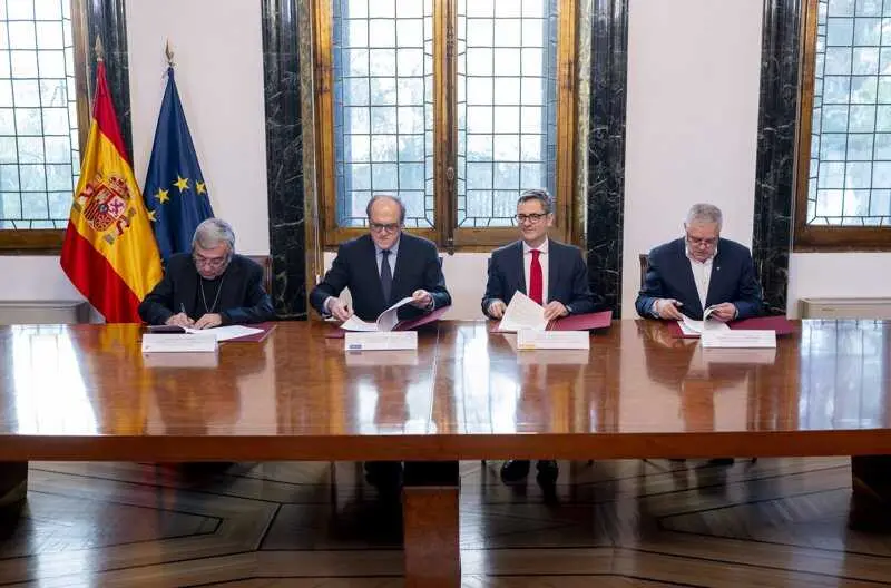 La firma del protocolo, que llega un mes después de lo previsto por el acuerdo suscrito en enero, ha tenido lugar este lunes entre el ministro Félix Bolaños; el Defensor del Pueblo, Ángel Gabilondo; el presidente de la Conferencia Episcopal Española (CEE), Luis Argüello; y el presidente de la Conferencia Española de Religiosos (CONFER), Jesús Díaz Sariego, en la sede del Defensor del Pueblo, en Madrid.
