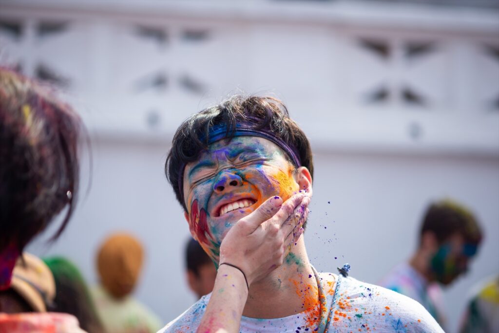 La gente se aplica polvos de colores durante la celebración del festival Holi para marcar la victoria del bien sobre el mal y también simboliza la llegada de la temporada de primavera.