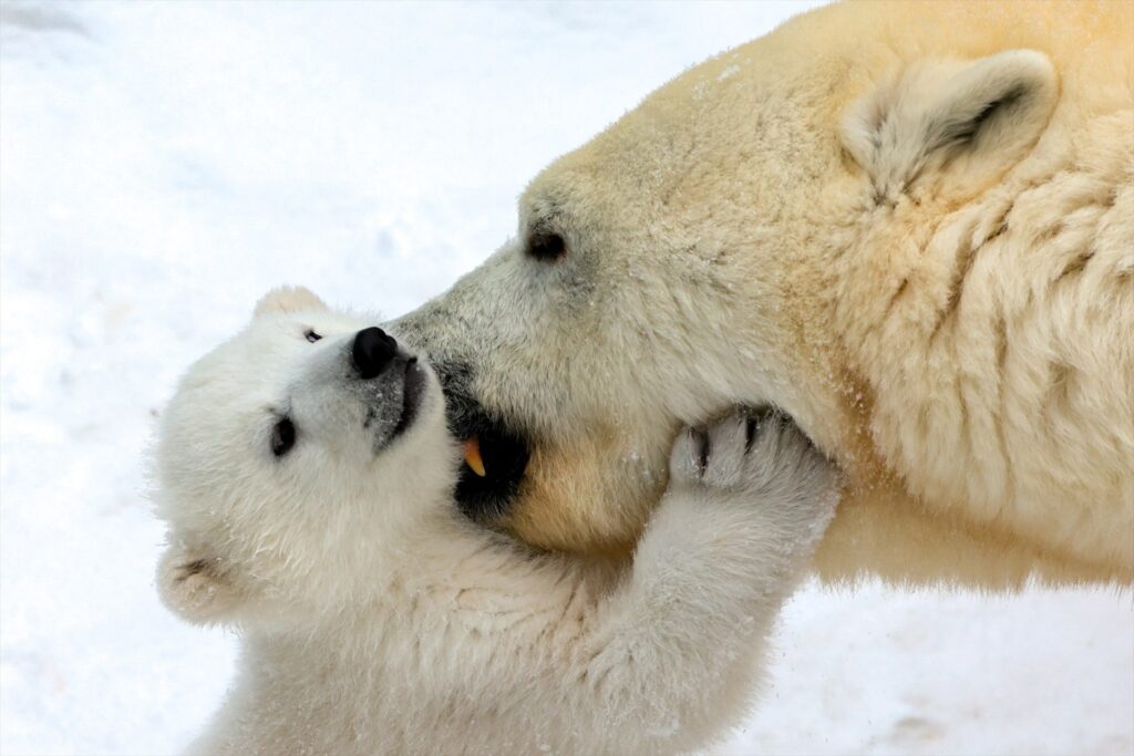 Rusia, Novosibirsk: Un cachorro de oso polar se acurruca con su madre en el zoológico de Novosibirsk. El cachorro nació el 7 de diciembre de 2025, hijo de los osos polares Kai y Gerda. Los biólogos aún no lo han examinado ni han determinado su sexo.