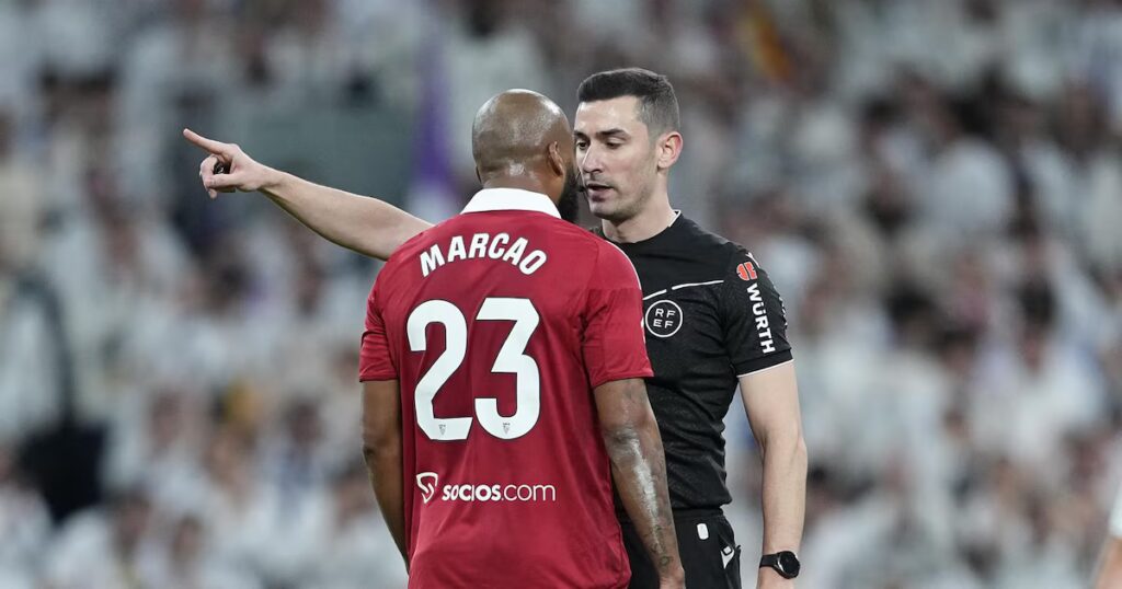 El central brasileño del Sevilla FC Marcos do Nascimento Teixeira ‘Marcao’ fue sancionado con seis partidos de suspensión tras su expulsión por doble tarjeta amarilla ante el Real Madrid el pasado sábado, cuatro de ellos por ofensas verbales al árbitro principal, según dictaminó el Comité de Disciplina de la Real Federación Española de Fútbol (RFEF) este viernes.